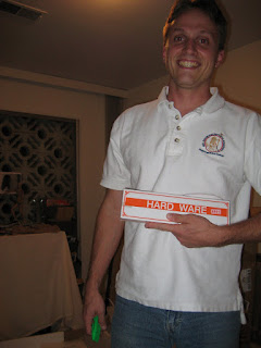 And if we had to buy a cage, I mean crib, I didn't really want to sink oodles of money into it. I don't really like the idea of cribs (look like baby cages) and I'm hoping to move our child into the toddler bed option as soon as they are able. The one we bought was a pain to assemble, but that was Tim's problem. It does come with a nice drawer underneath for storage and the toddler bed rail. here is a lovely pic of Tim and in the middle of assembly- After noticing that spelling error, we decided to have the crib lead tested. Still awaiting the results....