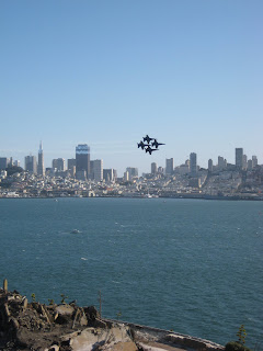 While we were in the island, the Blue Angels just happened to be practicing for the air show this weekend. It was great to see the San Francisco skyline with jets flying by and the boats on the water. It was great, except for the restrooms. Maybe they were going for the whole "prison" experience, but the restrooms outside the prison cell could have been cleaner. So as I left the restroom- the on that is located at the top of Alcatraz island- I stepped out into the beautiful California Sun and all of the sudden, this Blue Angel jet flew right behind my head. It was crazy loud and I swear I could see the whites of the pilot's eyes. Of course, I was already a