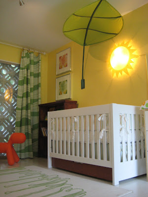 5-Sun Sconce and Leaf Canopy- The most literal references in the nursery- I chose these in place of a traditional mobile. Available at http://www.ikea.com/